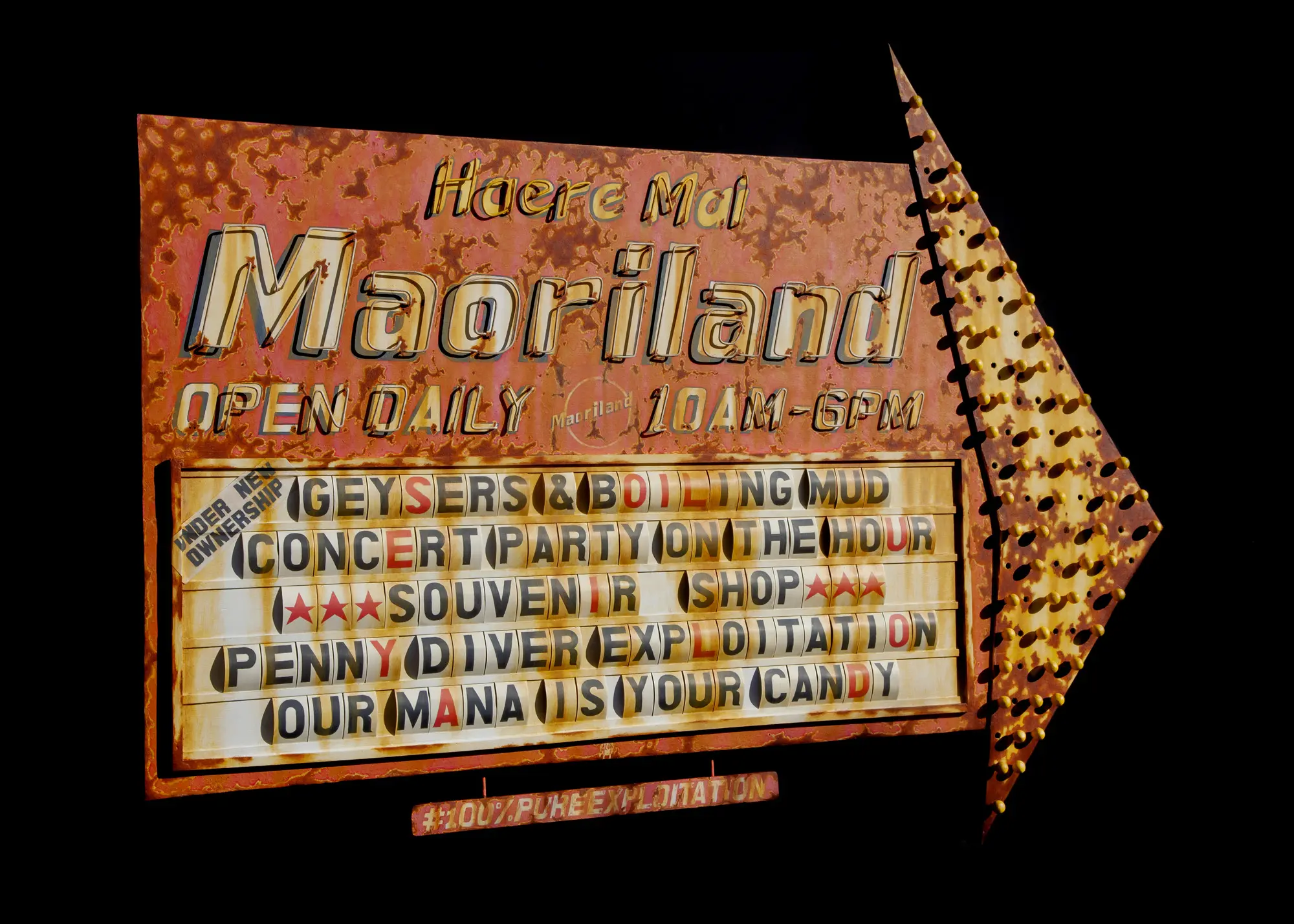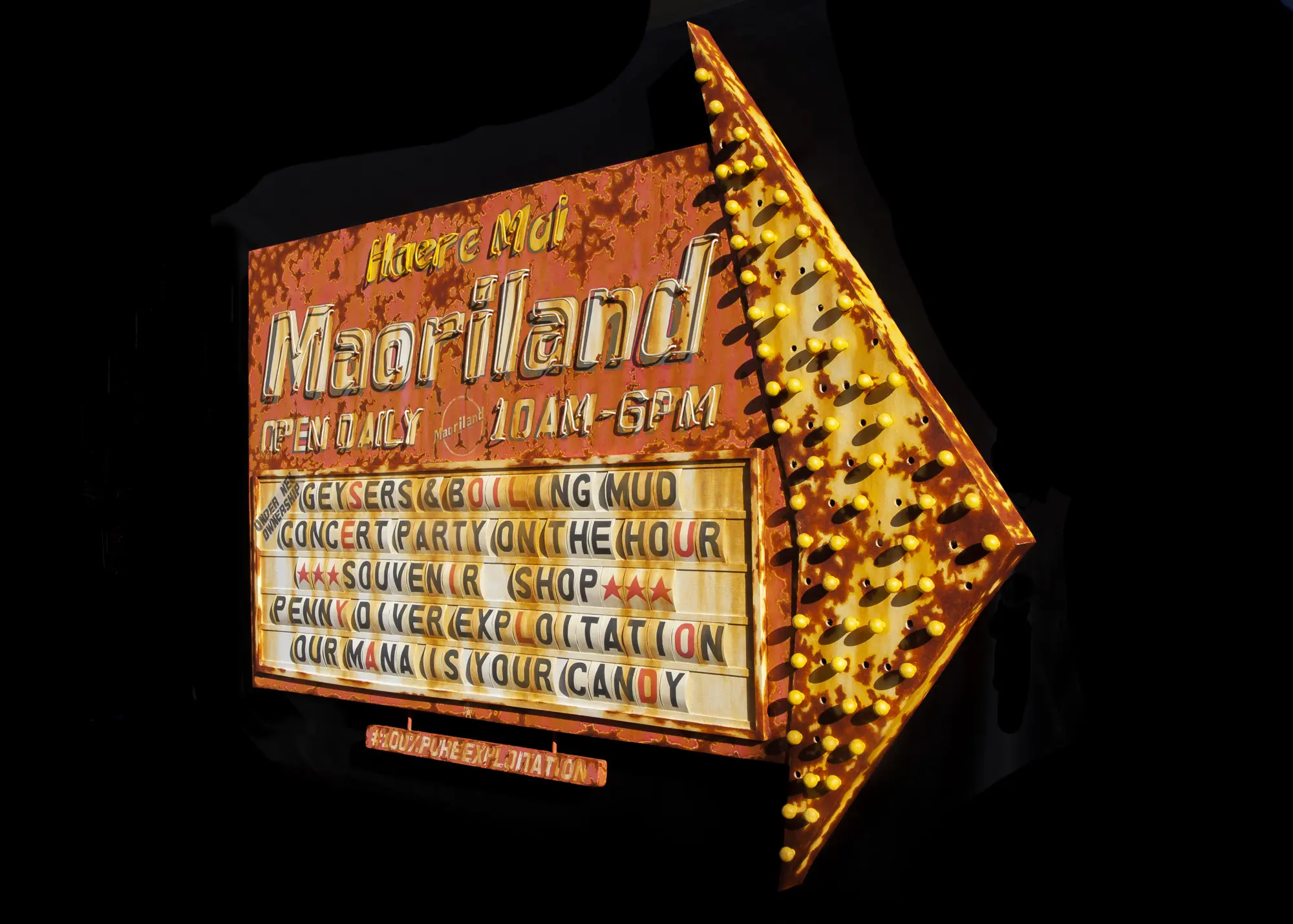 Awkward interrogates the legacy of New Zealand tourism through the lens of cultural appropriation. The term Maoriland—coined in the 1860s and formalised in 1901 by the Department of Tourism and Health Resorts—was a branding tool to attract visitors by showcasing Māori culture as a national asset.
