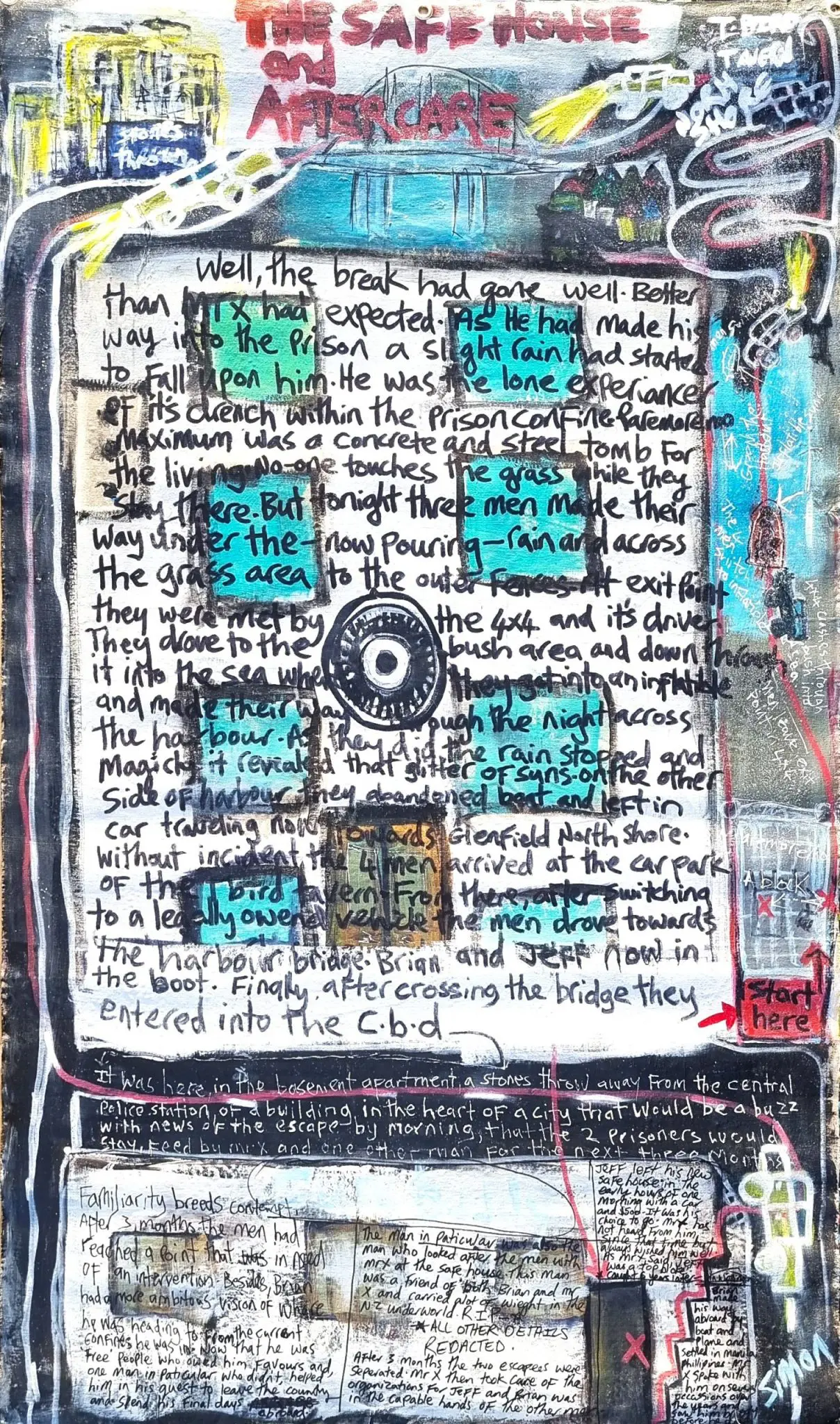 This work is a visual artifact of one of New Zealand’s most audacious prison breaks of Michael Bullock and Brian Curtis.